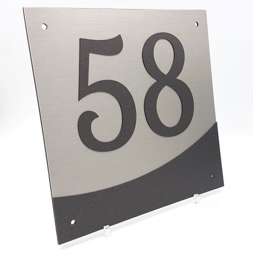 Numéro de maison moderne en dibond®* aluminium brossé - Format 200x200mm - épaisseur totale 5mm environ.